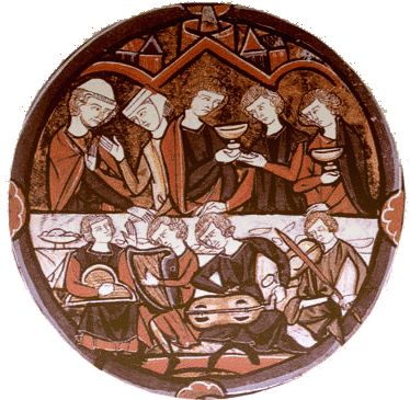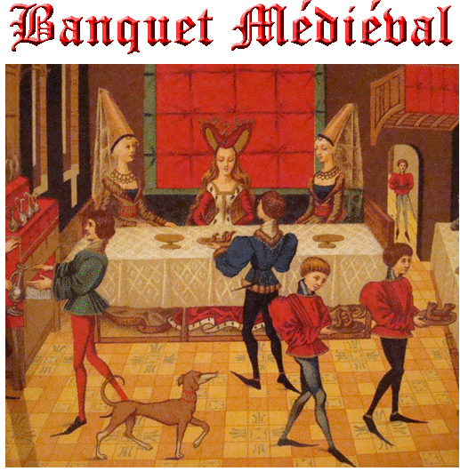 on y suit l’ordre d’un repas médiéval « de Roi » : Potages ==> Rostis ==> Entremets